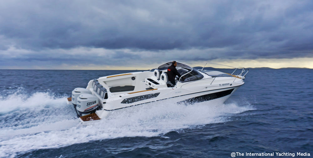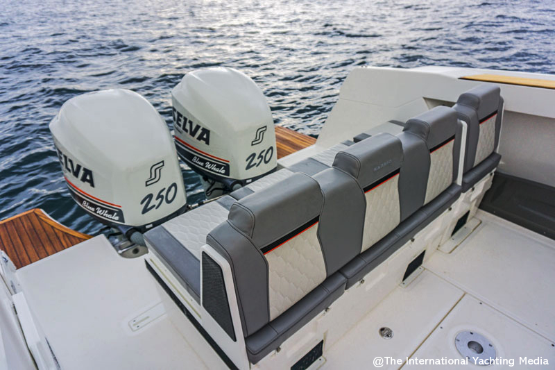 Pour notre essai, le Karnic SL 800 est équipé de deux moteurs hors-bord Selva Blue Whale, de 250 HP chacun. La puissance totale dont nous disposons – 500 CV – est importante pour un croiseur qui pèse à peine plus de 2 600 kg. Je me demande si nous aurons vraiment l’occasion de l’utiliser aujourd’hui.