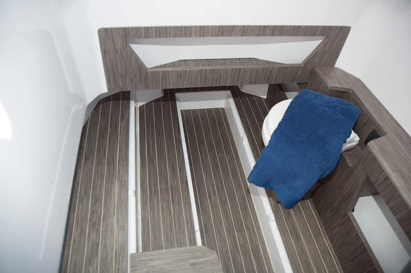 But it is below deck that we find another surprise. In addition to a small locker room and an electric WC, this area can accommodate a double berth to spend a night on board.