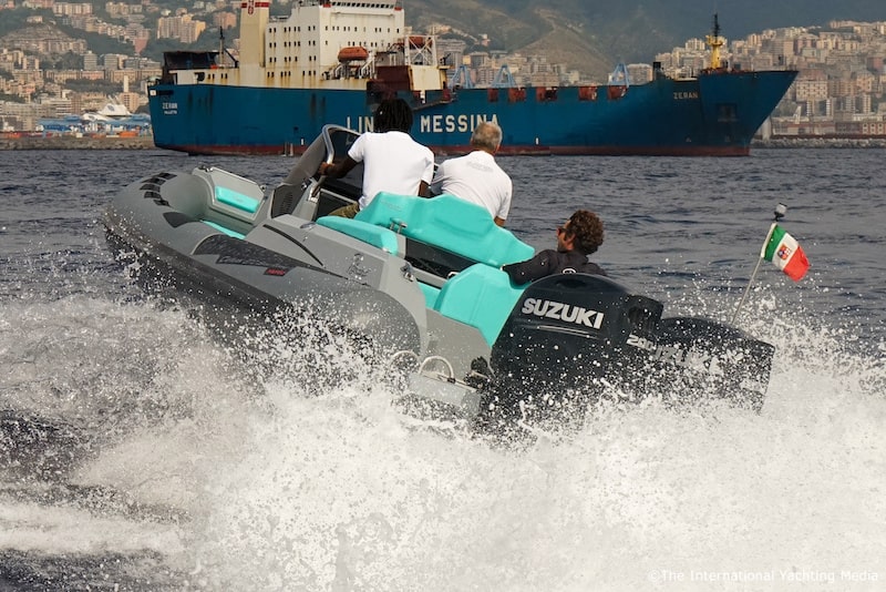 Test Conditions: slightly rough sea; 3 passengers on board; fuel tank at 100%; water tank at 100%; engines: 2xSuzuki 200