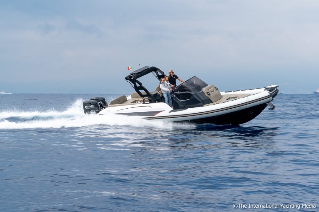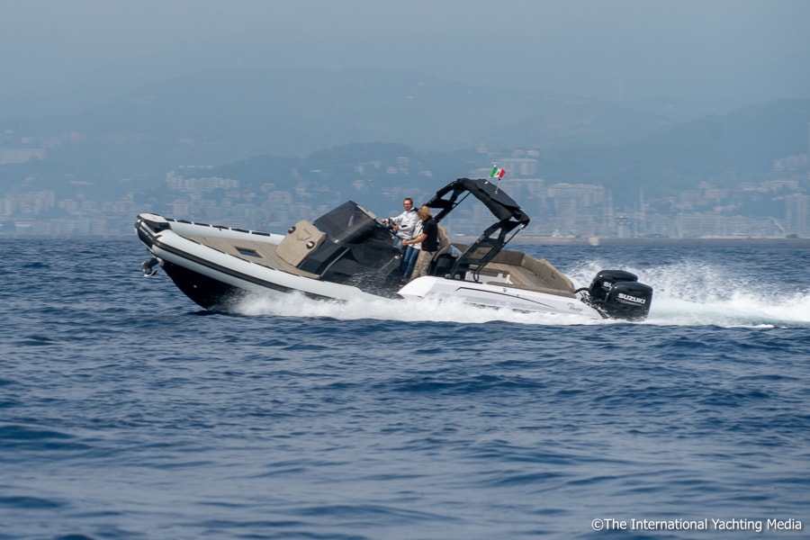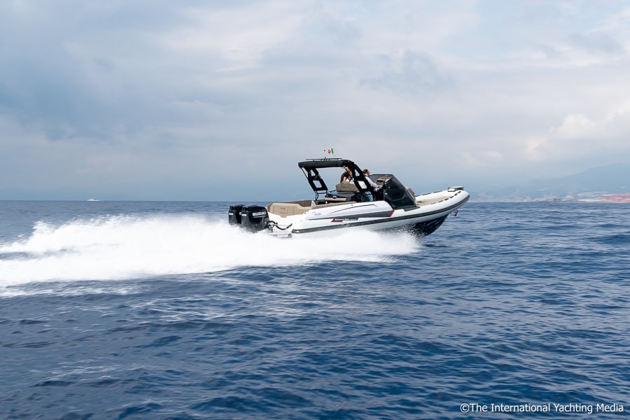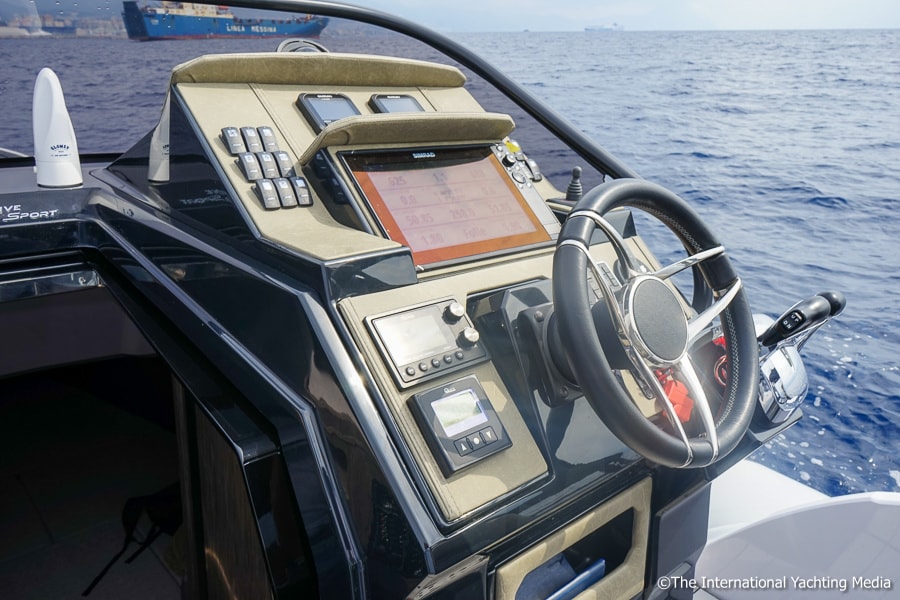 We end up under a rain cloud and we are therefore forced to escape in the opposite direction. So, I head to the waves and accelerate again. The RIB does not suffer the impact with the waves and, again, I make it run at top speed. The steering console offers a good wind protection and the rain is deflected by the windscreen at high speed. Miraculously, I don’t get wet and I keep warm.