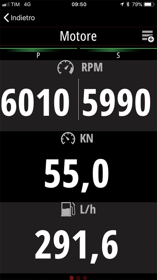 The data we collected clearly show that the best cruising speed is the one that the engines deliver at 3,500 rpm. The speed is above 25 knots and the total consumption for the two engines is 3.1 liters per mile.