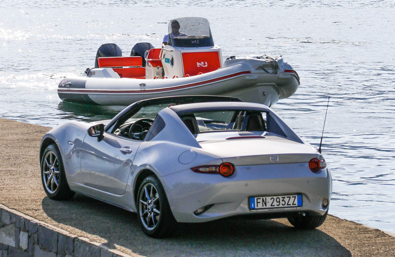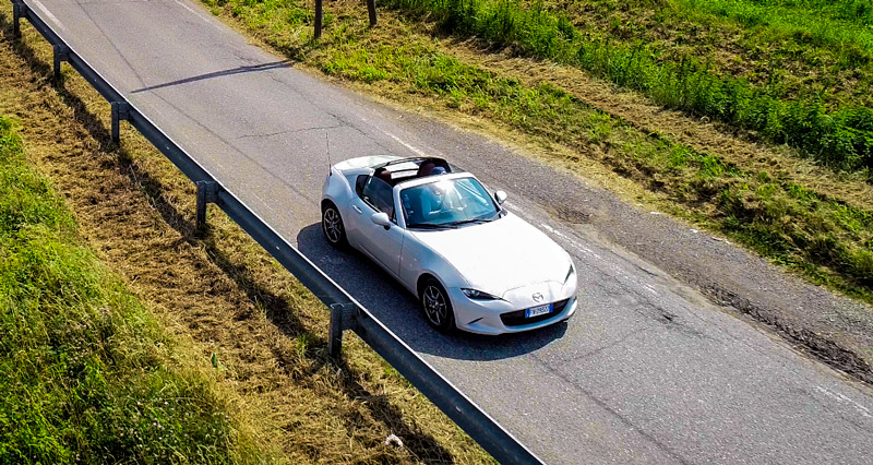 In one bit, I connect the audio system to my smartphone, I play ” Sultans of Swing”, engage gear and run on the deserted road. I run at full throttle and the sound of the MX 5 rises to go wild just as Mark Knopfler sings ” You feel all right when you hear that music ring”; a shiver of pleasure goes down my spine, I engage the second gear and, at that moment, I understand why this car is the world’s best-selling roadster.