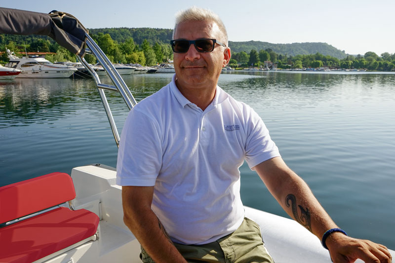 In her white and red livery, she stands out clearly against the background offered by the waters of the lake that, contrasted by the intense green of vegetation, make the general overview wonderful.
