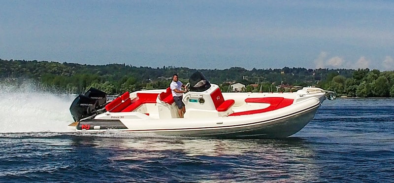So, I climb on board the Prince 30, the latest sporty creation by Nuova Jolly Marine, the Milanese shipyard that has already become famous all around the world.