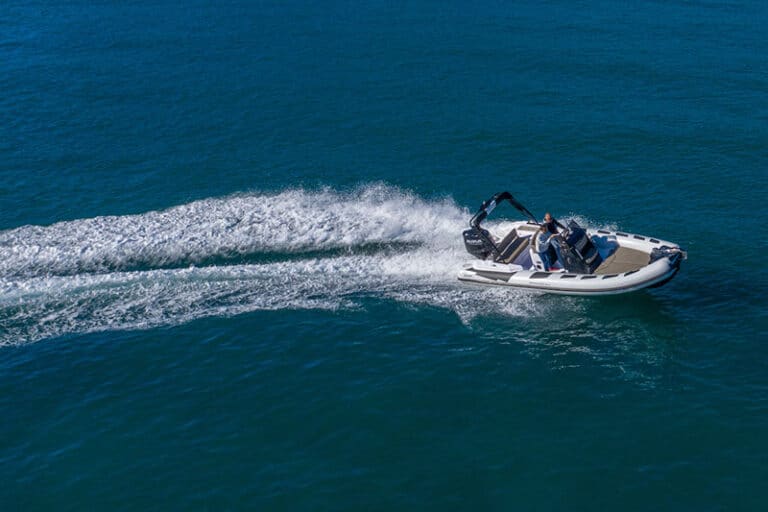 Every time we accelerate, the Rib responds without hesitation and with stunning stability: although the sea is flat today, the risk of losing control of the boat is high, especially when traveling at 25 knots, which is a rather high cruising speed in relation to the size of this boat.