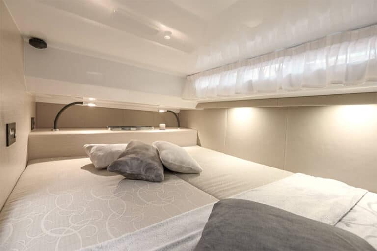 The lower deck is an extremely comfortable open space that makes this boat a definitively excellent day cruiser.