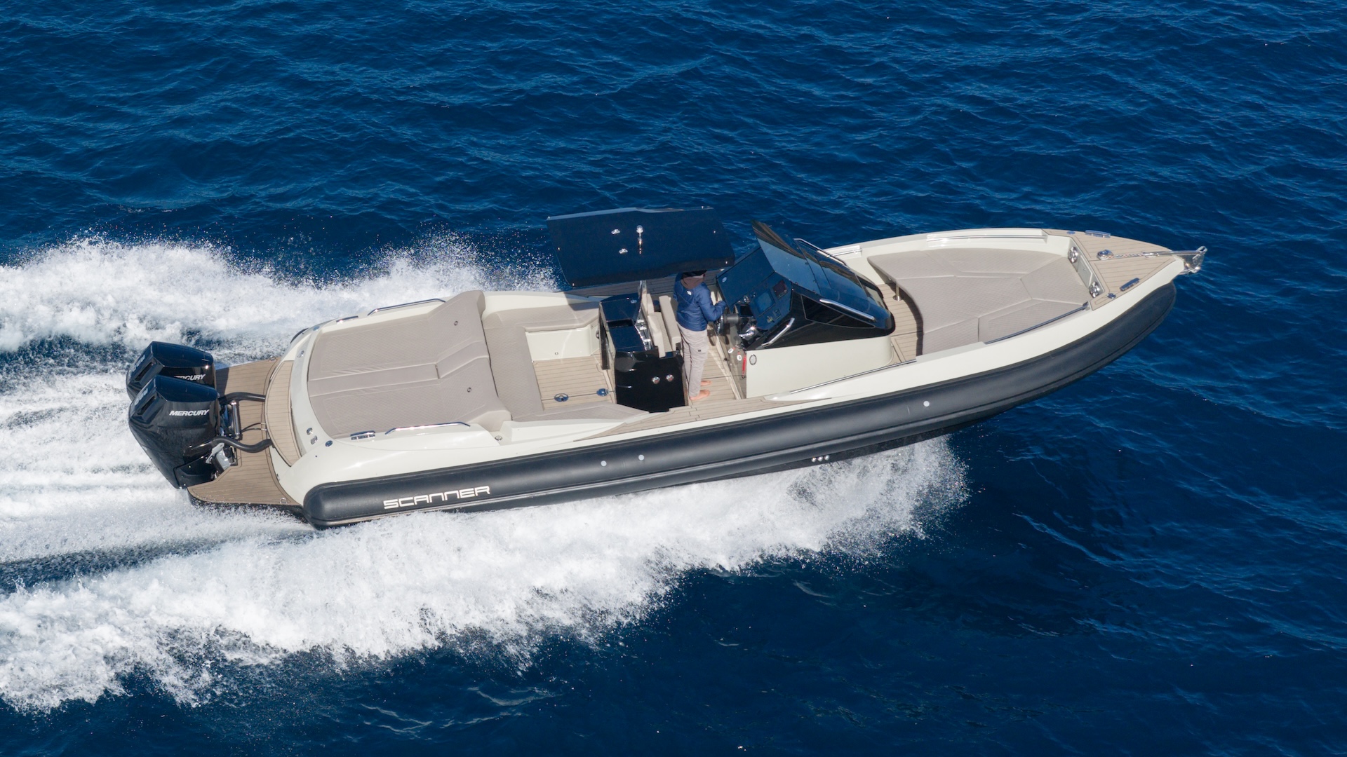 The beating heart of this maxi-rib is a formidable pair of Mercury Verado V10 outboard engines, each capable of delivering 350 horsepower. This configuration guarantees the Scanner Envy 1100 a massive total thrust of 700 horsepower. However, it is interesting to note that the shipyard has certified this model to handle even higher power outputs, allowing for engine configurations up to a maximum of 850 total horsepower.