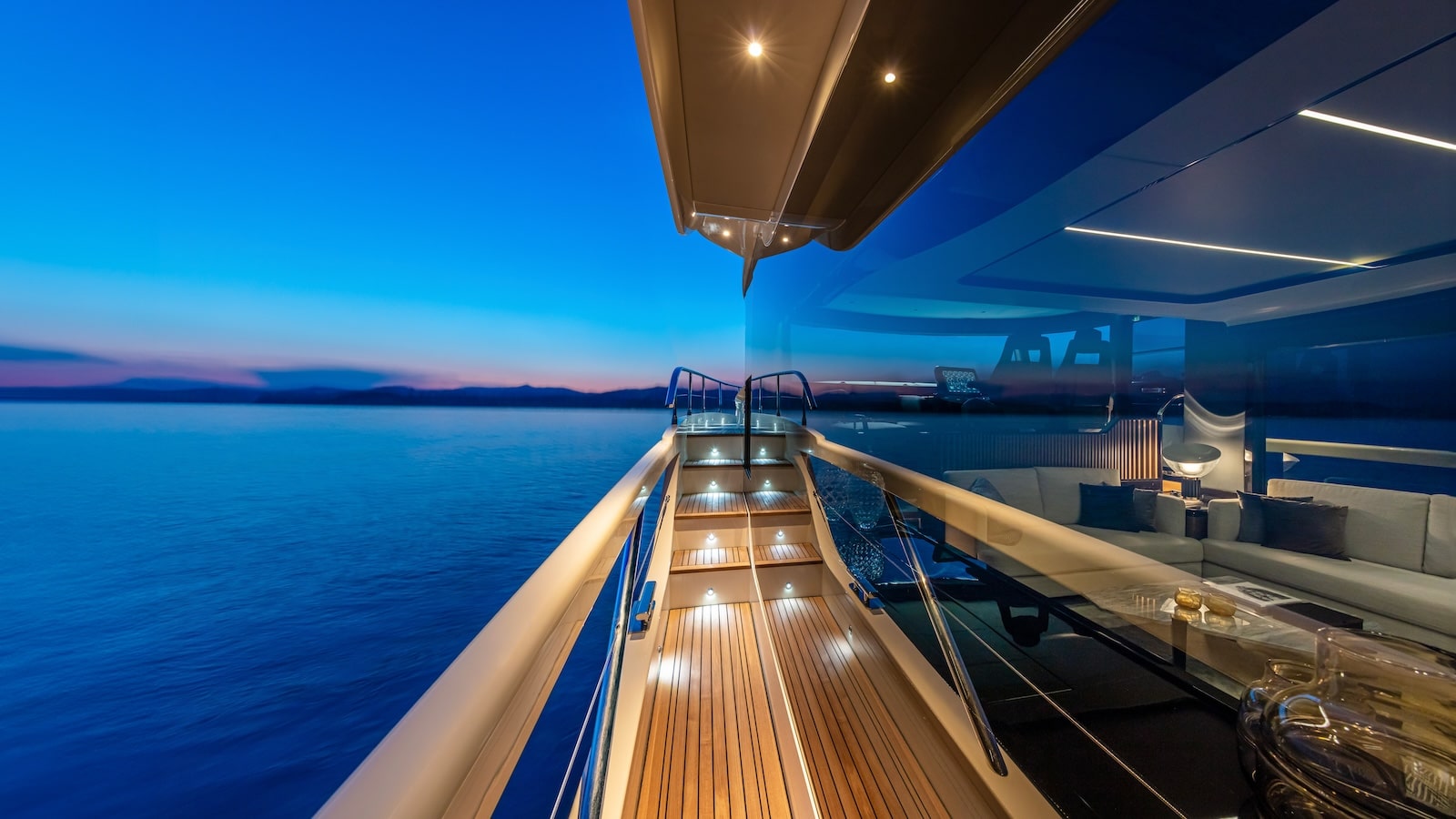 We are used to seeing solutions of this type on superyachts but, on a 20-meter unit, this idea drastically increases the pleasure of staying on board as well as the way of experiencing the boat.