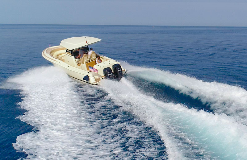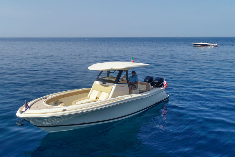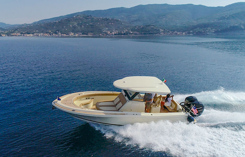This is why we’ve decided to test the latest novelty from this shipyard, the Catalina 30 which, despite its outboard propulsion system and center console arrangement, does not need to show the Chris Craft brand to be immediately recognized as one among the jewels of the famous star-spangled shipyard.