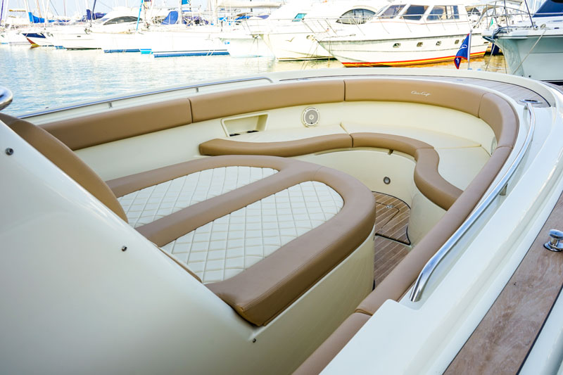 This boat is also perfect for fishing trips; you only need to lift seats to enjoy a totally unencumbered perimeter.