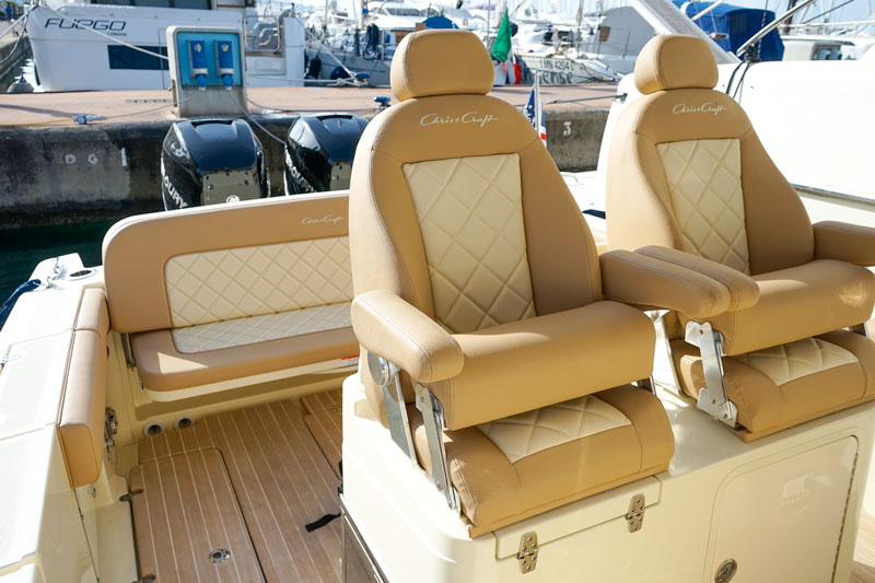 You only have to look around to realize that you’re on board a Chris Craft boat: elegance and beauty are everywhere, evenly distributed on board one among the best center console models currently available on the market.