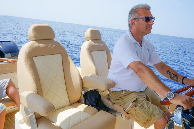I turn and see the crew; everyone is there and smiles at me, an undeniable sign that this Catalina 30 is really good and offers the most exciting experiences in total safety. After all, she’s a Chris Craft boat and I would have been surprised if it wasn’t so.