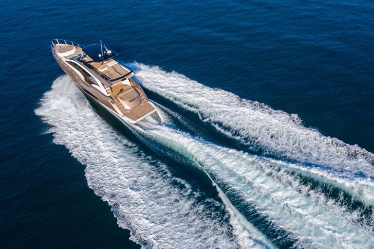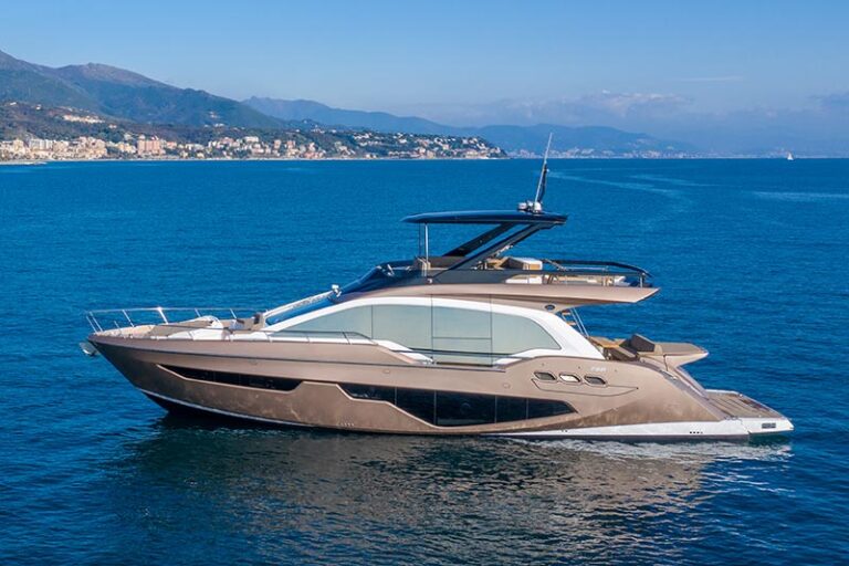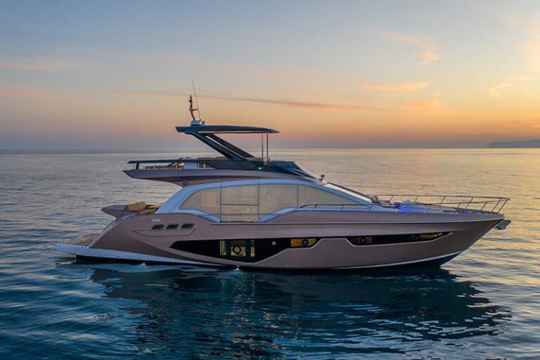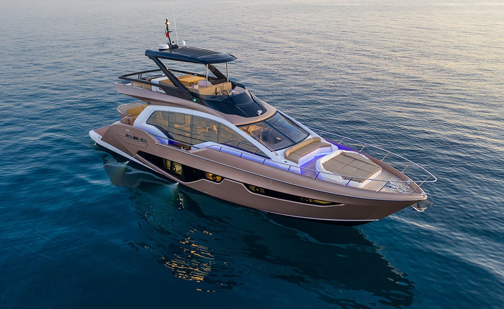 The model we tested was of a metallic gold colour, a definitively showy chromatic option. The yacht is offered in two other intriguing colour options – silver and metallic air blue. The concept is clearly inspired by the automotive world, making the Fly 68 Gullwing a definitively gritty, sporty and modern boat.