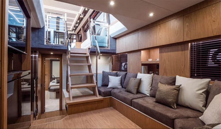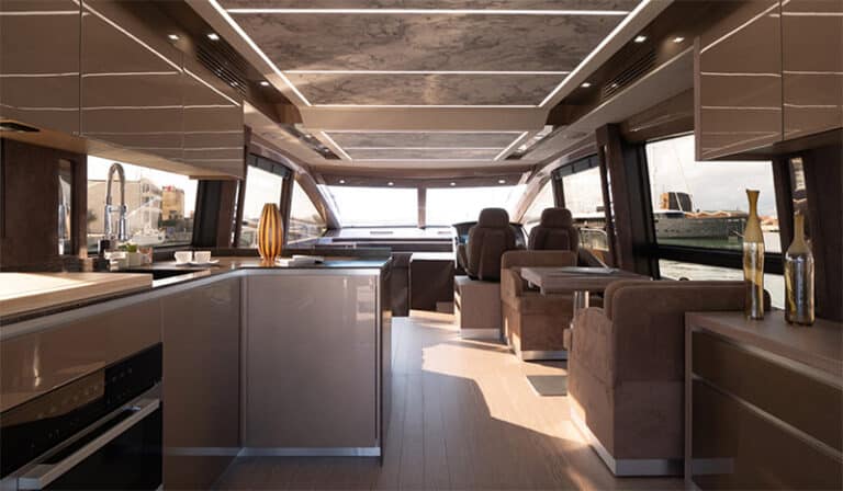 21 meters long and 5 meters wide, the Fly 68 Gullwing not only boasts surprising volumes and extraordinary habitability but also further enhances the interiors with a level of brightness that is unparalleled in its segment.