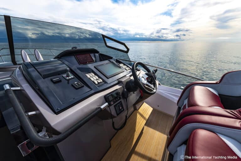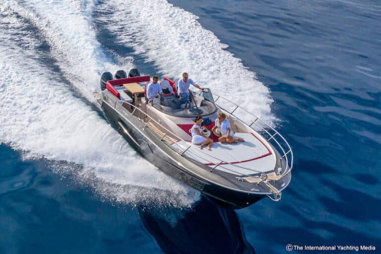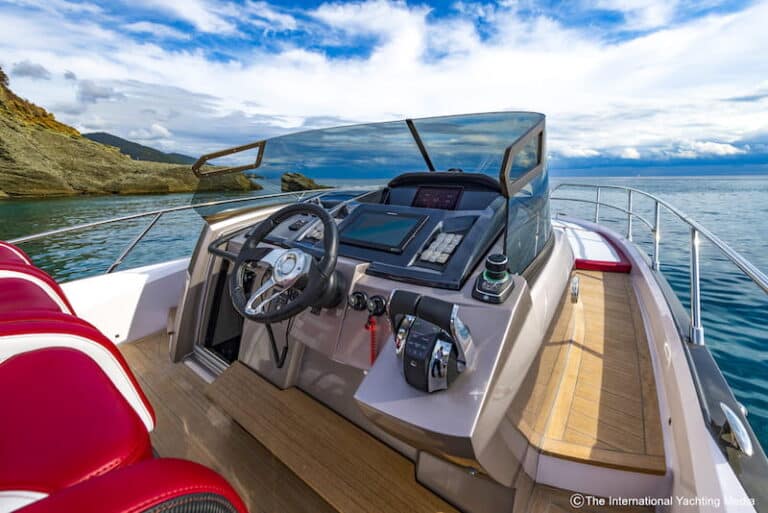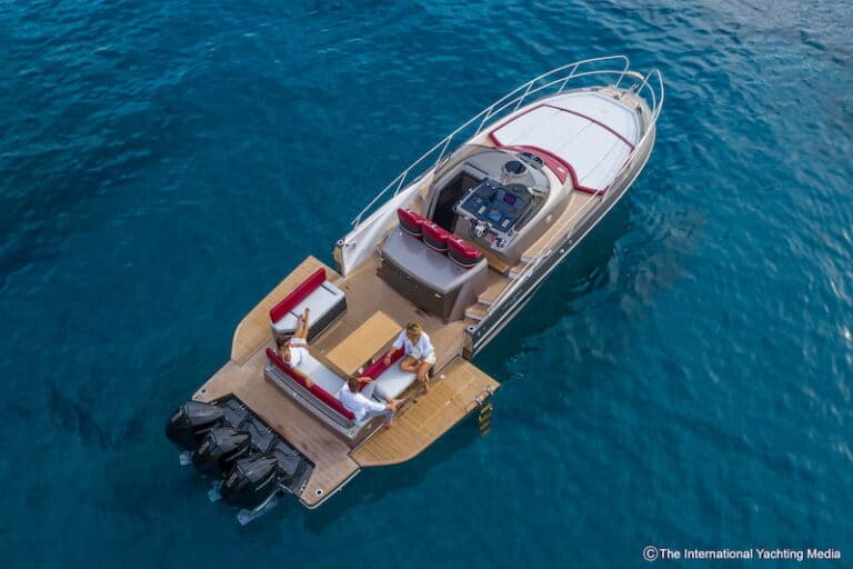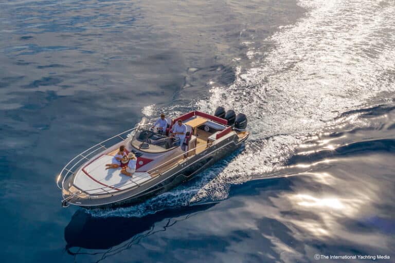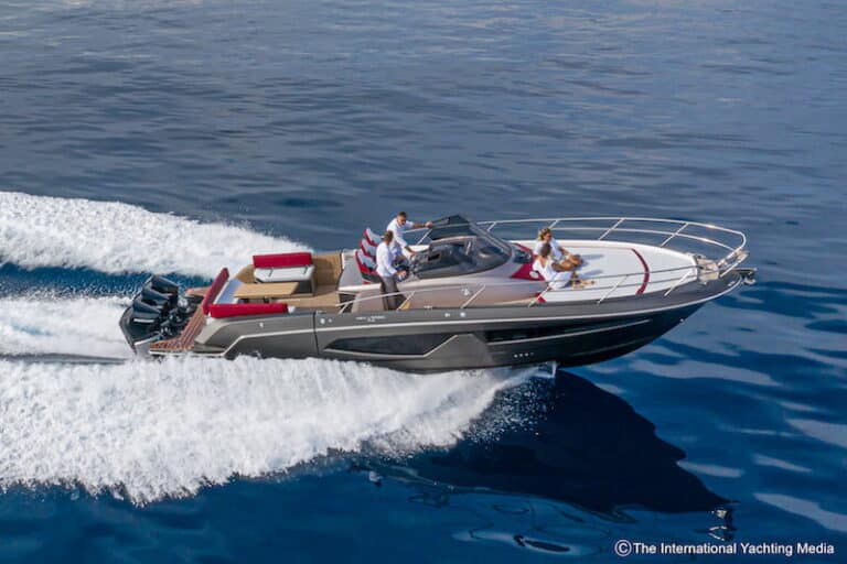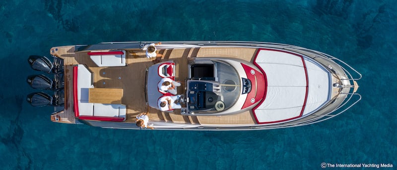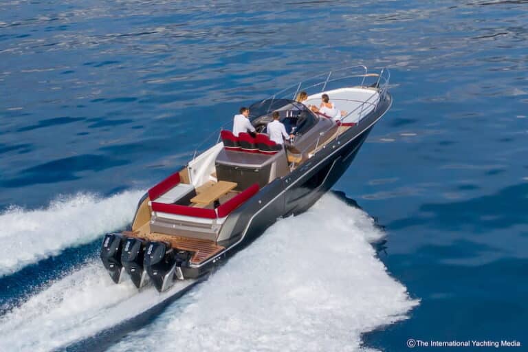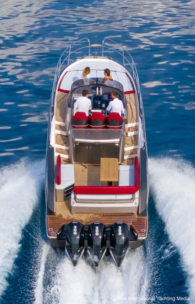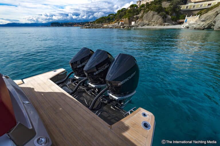Not surprisingly, during the sea trial we carried out in the Ligurian waters on a sunny day with calm sea, the boat reached a top speed of 43.1 knots. A possible upgrade is expected to improve performance by 200 rpm and 3 knots.
