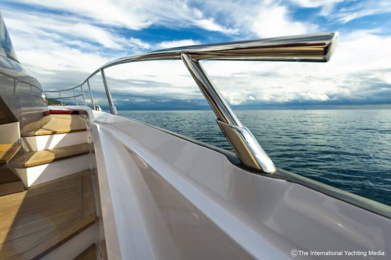 Useful handrails and handholds are conventiently positioned in the strategic points. Itìs a fast boat, so it is important to be safe on board. Wide enough, the side-decks are equipped with a high gunwale and stainless steel tubular rail that runs from midship to the bow, jutting out to leave more space inside.