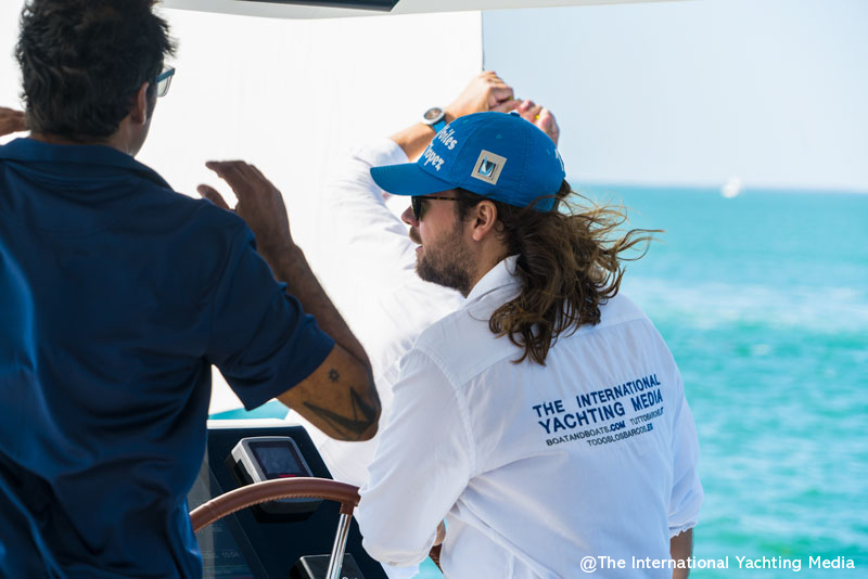 We cast off and I climb on the flybridge. From here, you can steer the boat easily, all rigging is led between the twin helms, easily accessible from both the port and the starboard side. Rigging is also supported by four electric winches, all grouped and positioned close to gears.