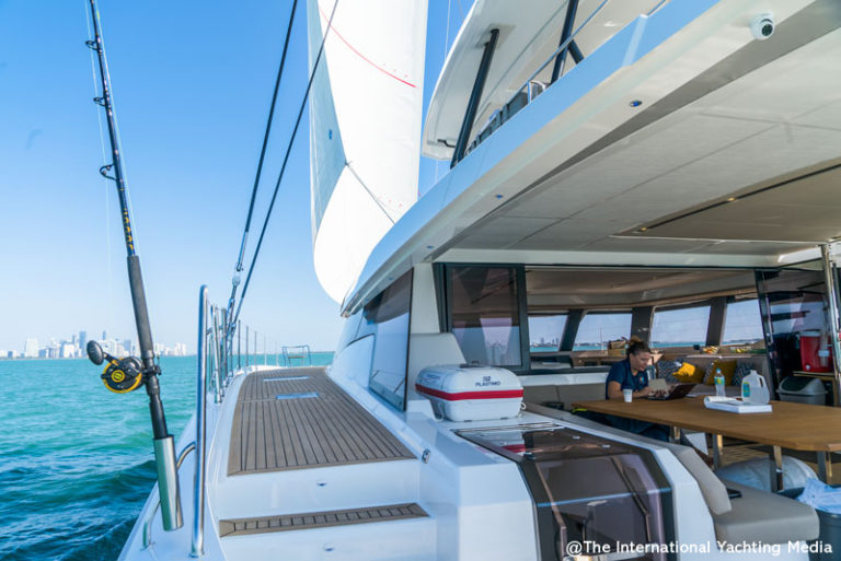 At the end of our tour, we finally seat and take stock of our visit. This Fountaine Pajot Alegria 67 is a really extraordinary catamaran. Fast under sail and meticulously designed to fully enjoy the sea, she can only be considered as practically perfect.
