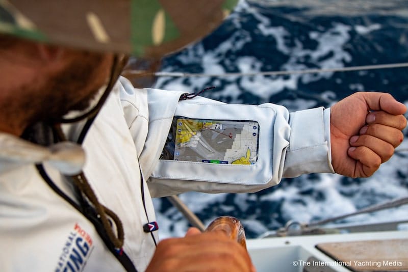 Moreover, the jackets are full of pockets and functional accessories, very useful for sailors. We pleasantly tested the removable smartphone pocket applied to the sleeve through a strap. Thanks to a transparent film, it does not compromise the touch operation of your smartphone and allows you to use your device with a specific navigation App, keeping it always at your fingertips.