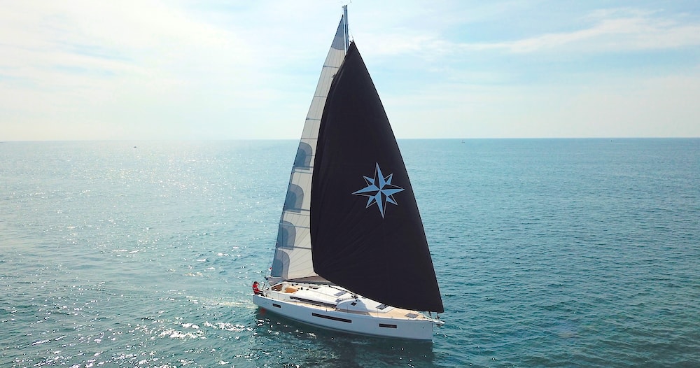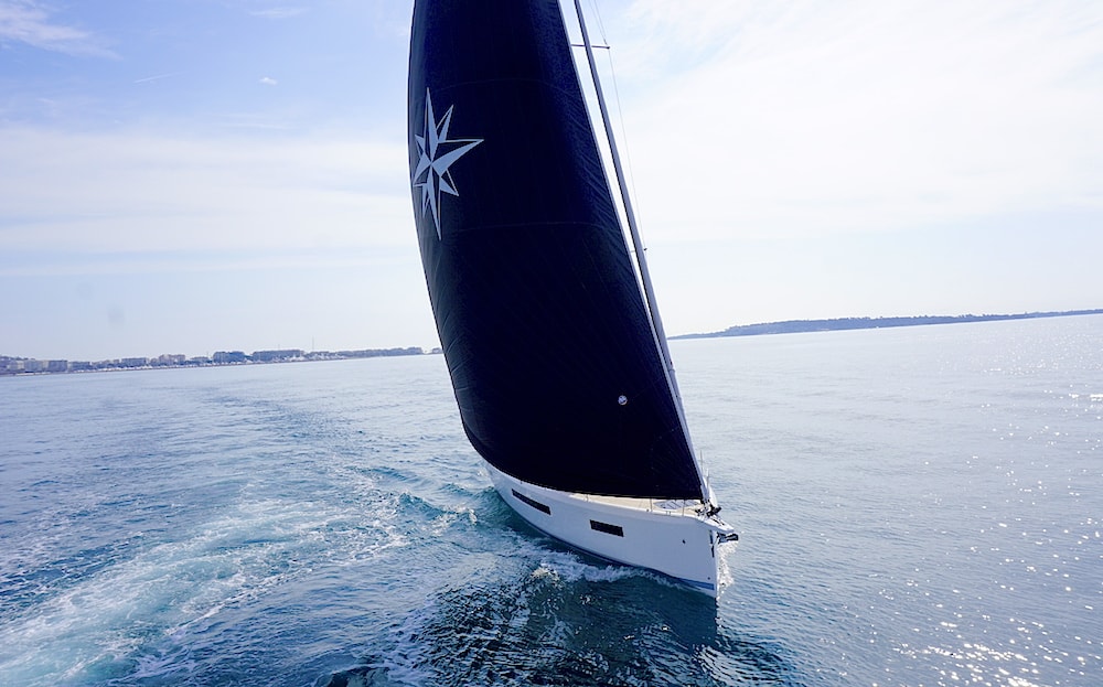 Our test boat featured a high-quality mainsail, equipped with three reefs and a German circuit. The jib furler was manual and the Code Zero was set up on the bowsprit, equipped with an electrically-operated furling system.